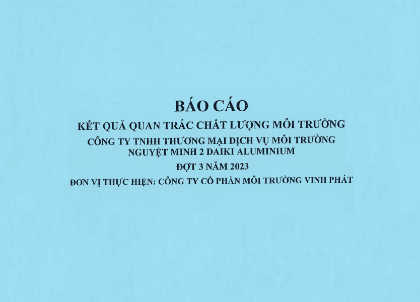Công ty TNHH Thương mại Dịch vụ Môi trường Nguyệt Minh 2 Daiki Aluminium xin gửi tới quý khách hàng, quý đối tác " Báo cáo Kết quả quan trắc chất lượng môi trường đợt 3 năm 2023"